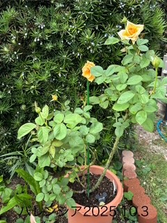 下は2025年7月13日のバレンシアとラズベリーアイス。2025年9月下旬のバレンシア、ラズベリーアイスです。そして、10月のバレンシアと、ラズベリーアイスです。他にも18鉢ほどありますが、どれも元気です