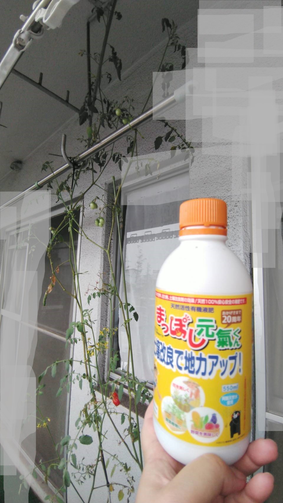 4月上旬に10号鉢に1株づつ植えつけたミニトマト2株。順調に育っていたのに下旬に背丈100センチ程で成長がとまってしまいました。どうしたものかと思案していたところ、「まっぽし元気くん」に出会いさっそく散布しましたが、効果がなかなか見られず諦めかけた1ヶ月後、若い成長点に変化が出て来ました。